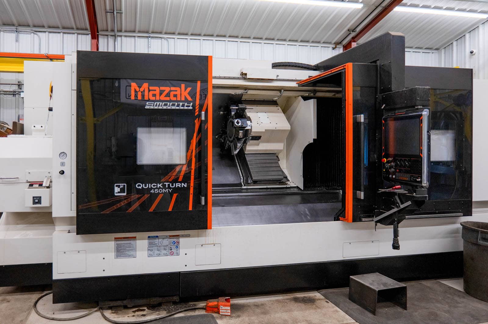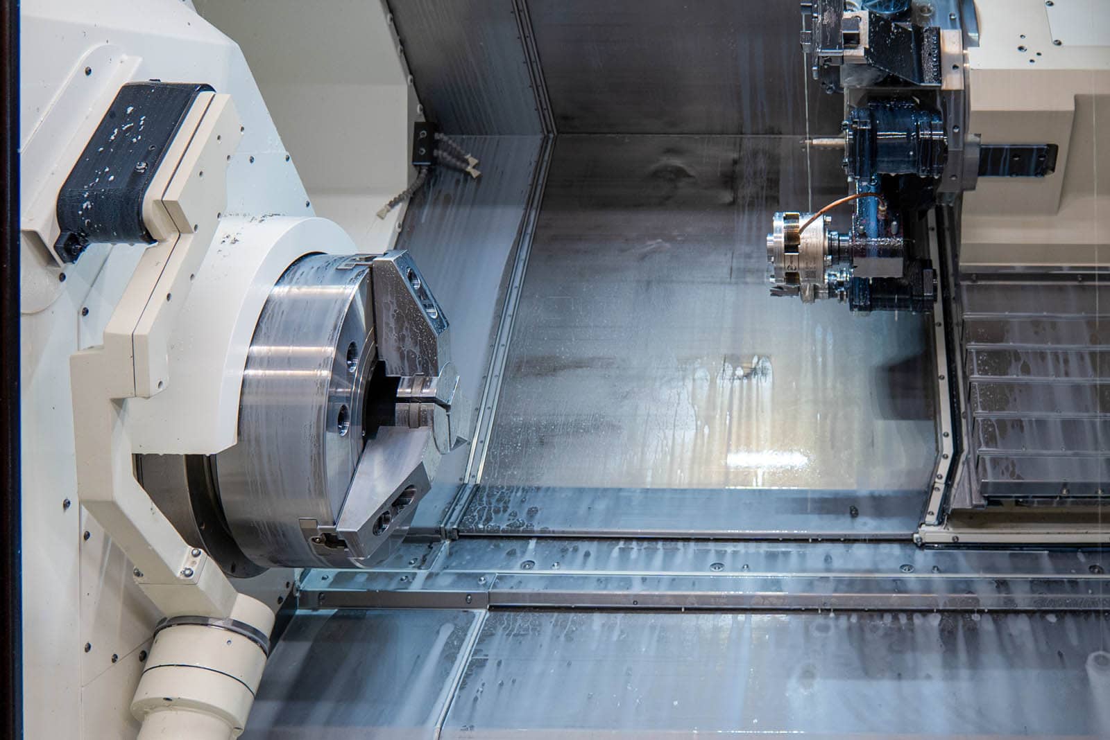 Produces tight-tolerance shafts, fittings, custom cylindrical components, and milled features for food processing machinery. Reduces setups and improves accuracy for sanitary-grade parts.