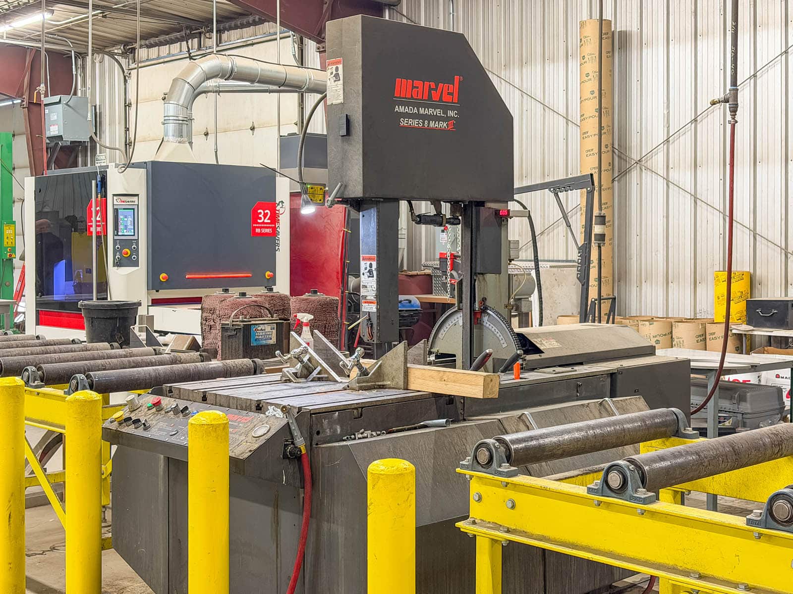 Delivers accurate cuts on beams, pipes, and structural sections for frames and supports in food processing equipment. Supports miter cuts for custom fabrication.