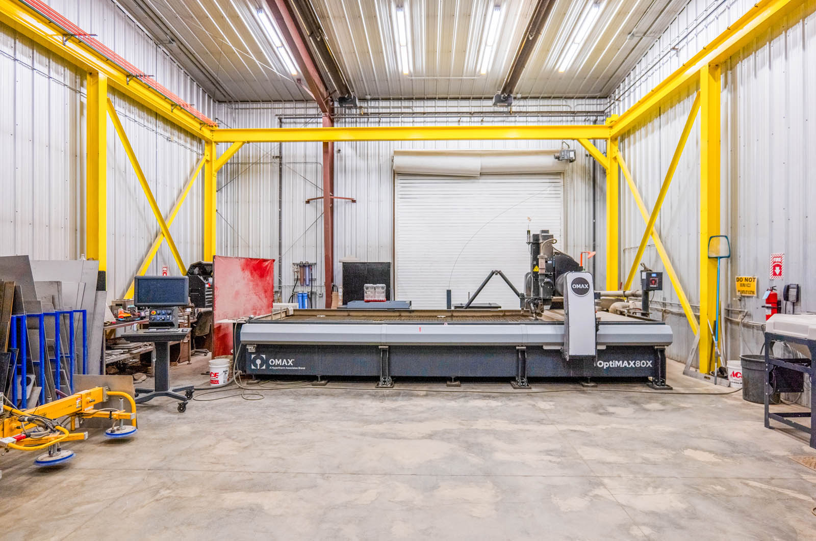 Large-bed abrasive waterjet system for cold-cutting various materials with high precision.